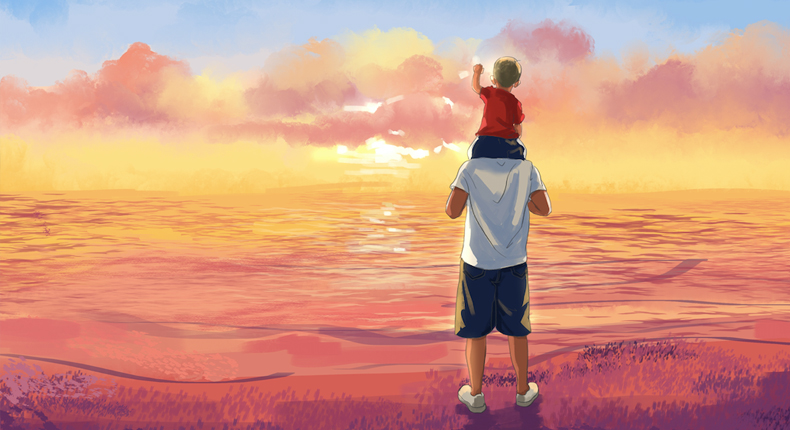 詩人北島曾經(jīng)說過:“父親是一本書,沒有華麗的詞句,卻有道不盡的真實(shí)?!币粋€(gè)肩膀、一個(gè)背影,父親帶給我們的安全感,永遠(yuǎn)不可替代??偰茉谧钚枰獣r(shí)候出現(xiàn),為我們遮風(fēng)擋雨!